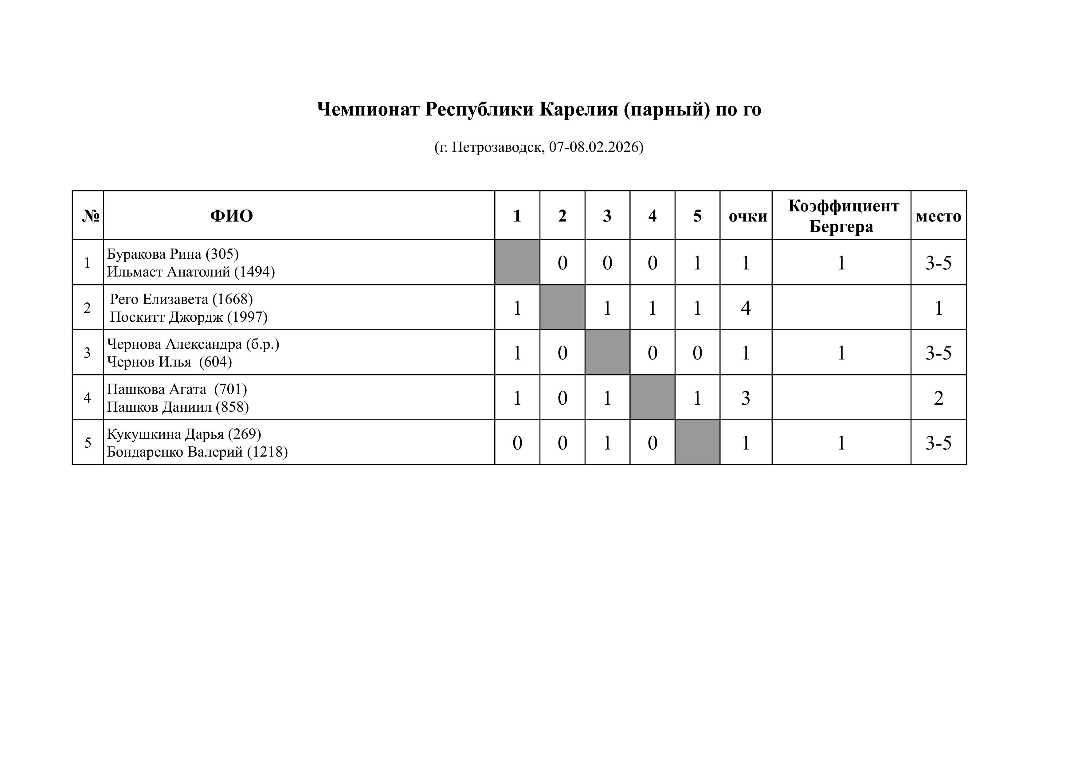 Чемпионат Республики Карелия (парный) по го (07-08 февраля 2026 г.)