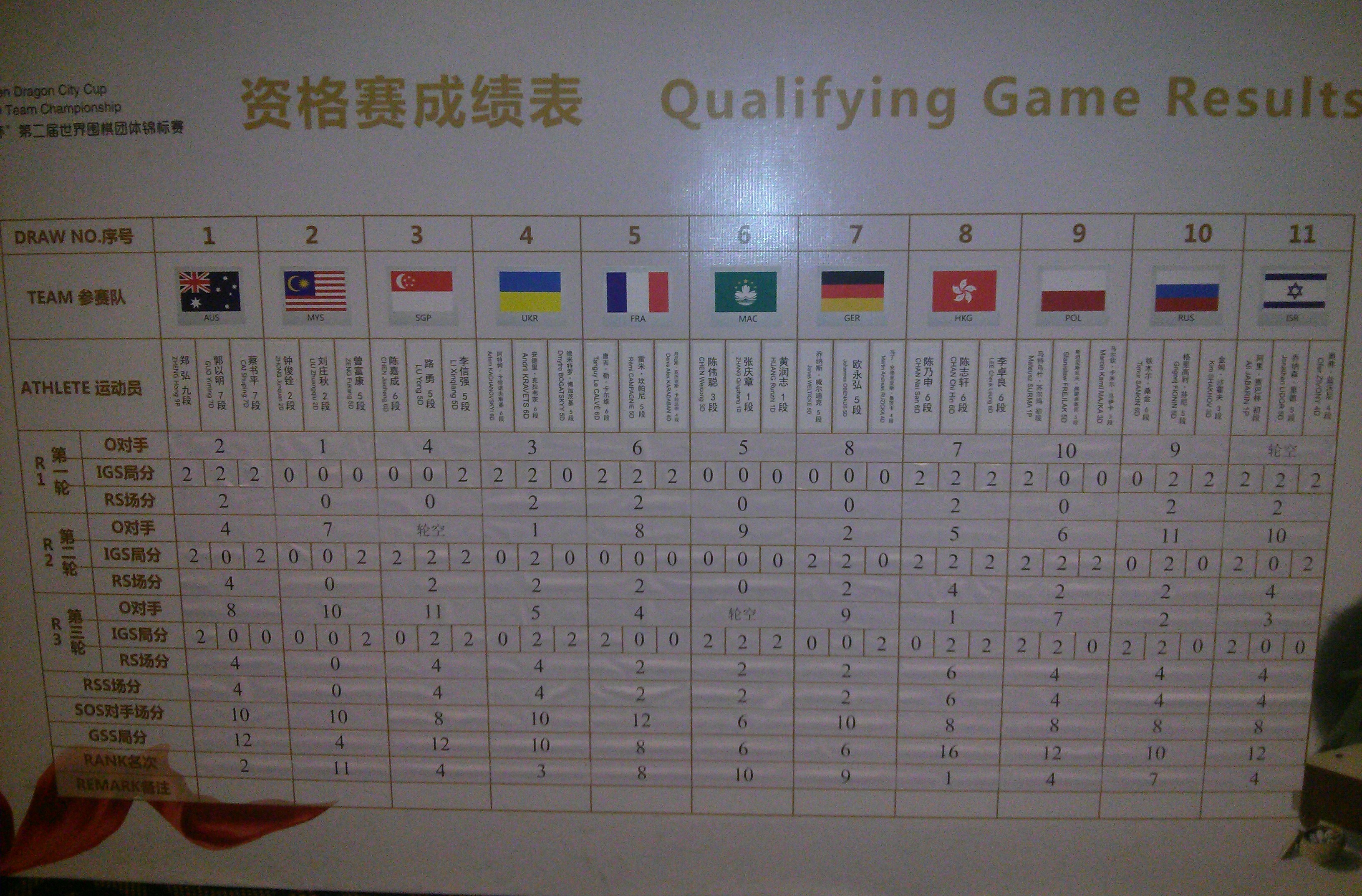 Япония – Гонконг 2-1 (сенсационное поражение Йоды Норимото от 6-го любительского дана не оказалось решающим).